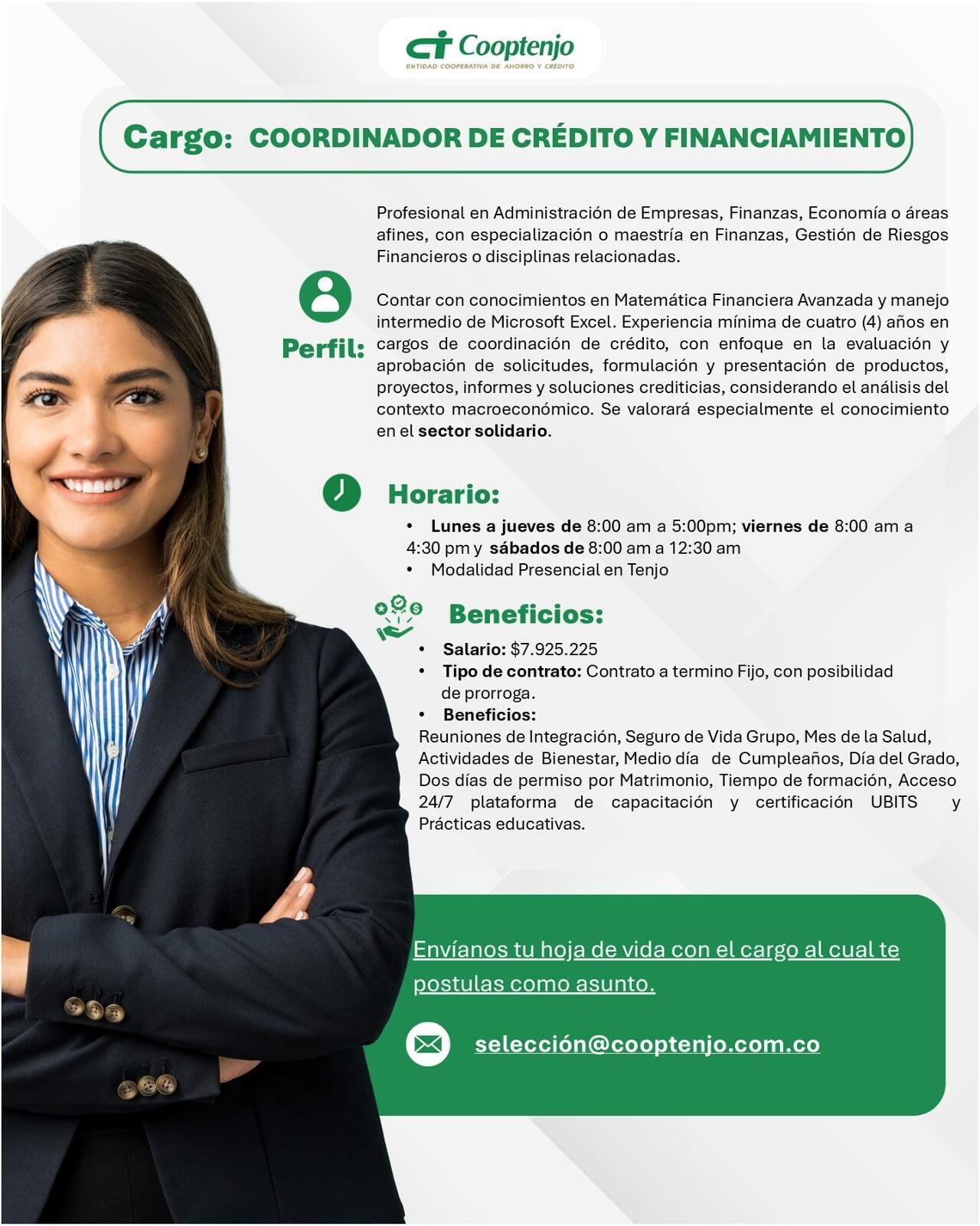 Envía tu hoja de vida al correo seleccion@cooptenjo.com.co o diligencia el formulario de la parte superior.